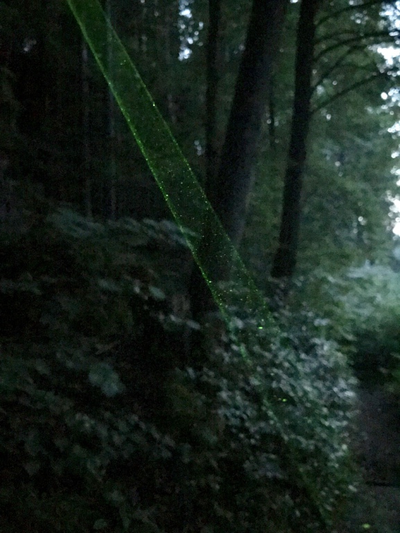 Taken with the camera of my smartphone while moving the green laser beam in the fog.